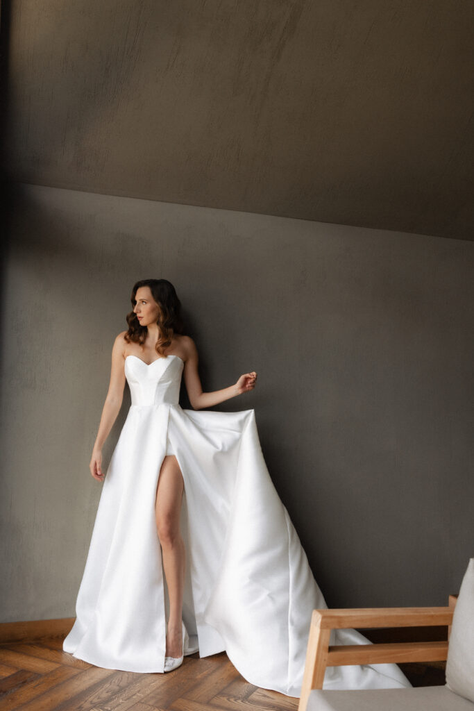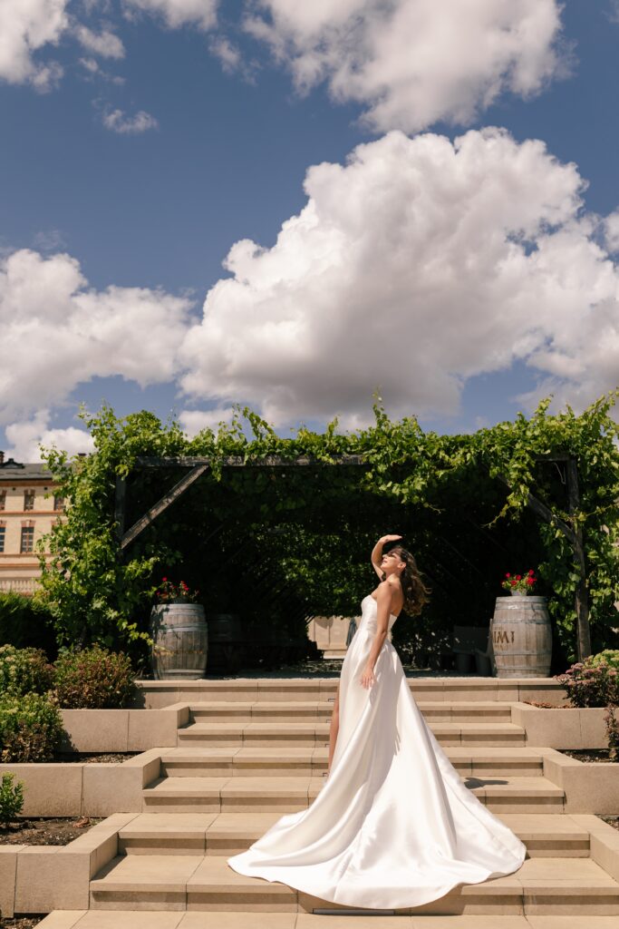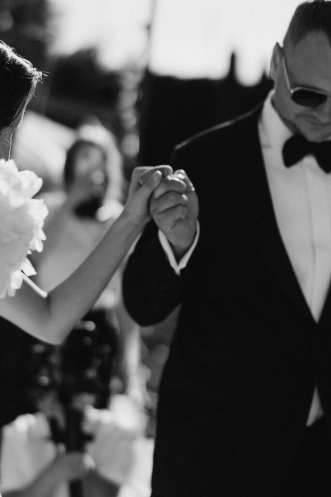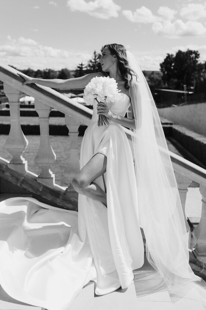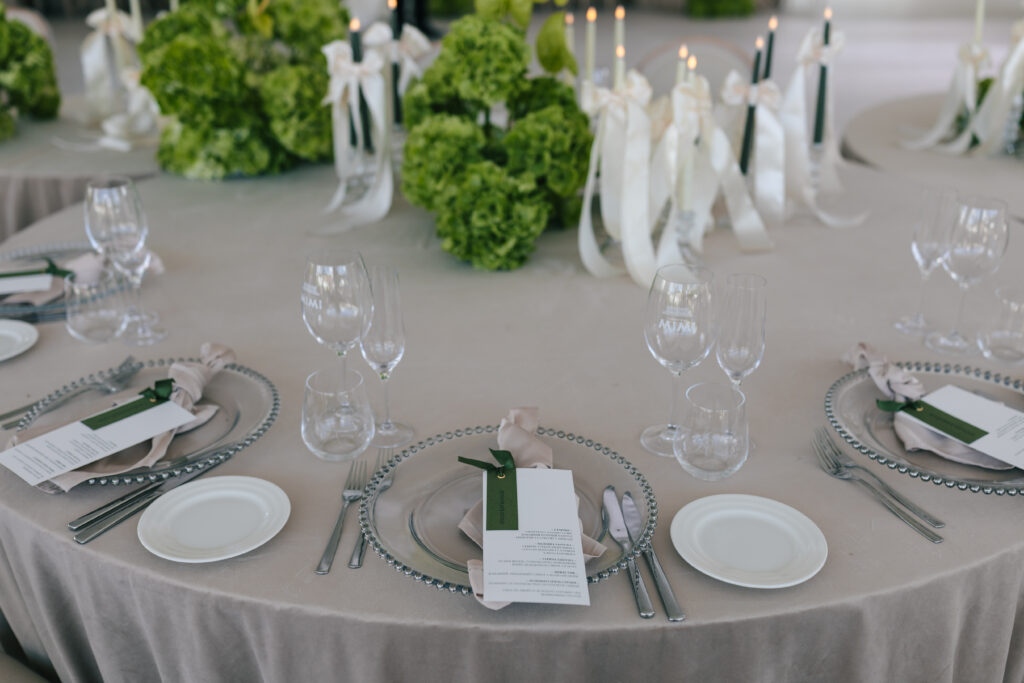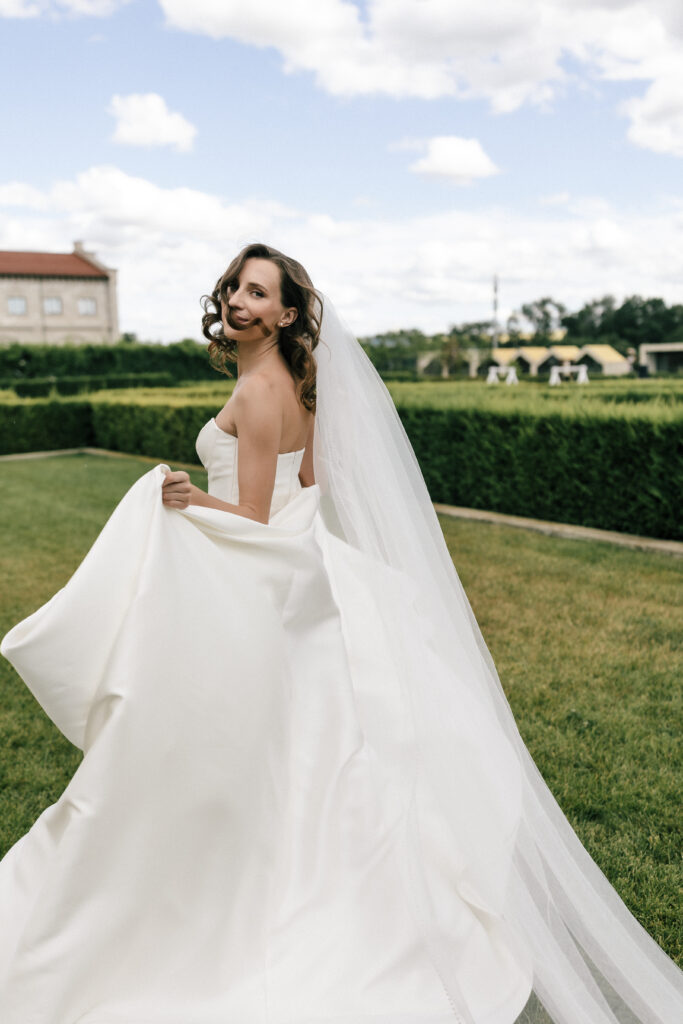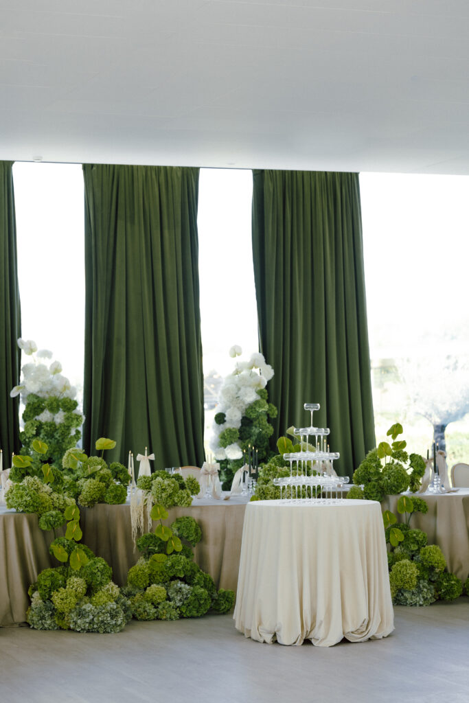 Весілля Володимира та Олесі стало справжньою казкою, що розгорнулася у величному замку-виноробні в Молдові. Церемонія відбулася просто неба серед найближчих друзів пари, які прилетіли з усього Світу, щоб святкування їх кохання. Гості, одягнені у бездоганний дрес-код, виглядали так, ніби зійшли зі сторінок романтичного фільму. Урочиста вечеря пройшла у залі серед безлічі живої зелені та понад 700 свіжих гортензій. Це весілля стало не просто святом — а справжньою історією кохання, зануреною у витончену елегантність та естетику.