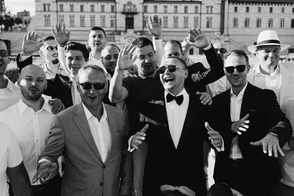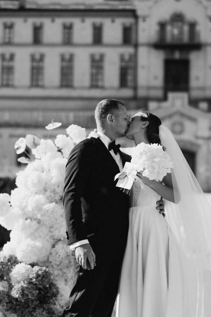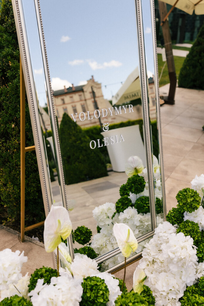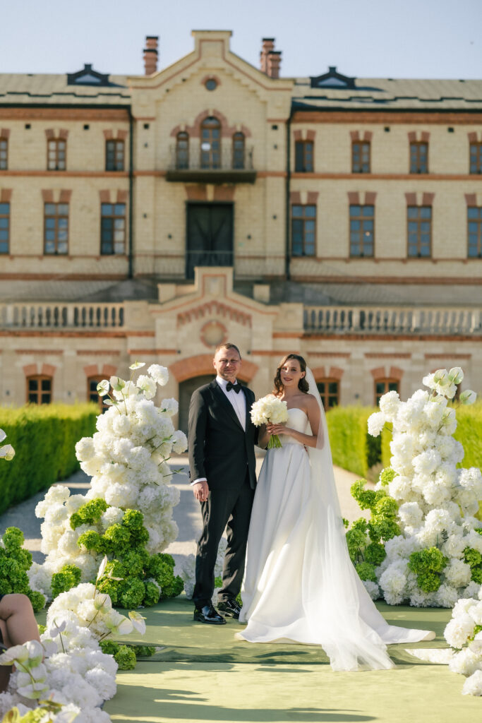 Весілля Володимира та Олесі відбулося у замку-виноробні в Молдові, серед понад 700 живих гортензій і розкішної зелені. Гості у бездоганному дрес-коді насолоджувалися триденним святкуванням у готелі замку, що створило атмосферу приватності та справжньої казки.